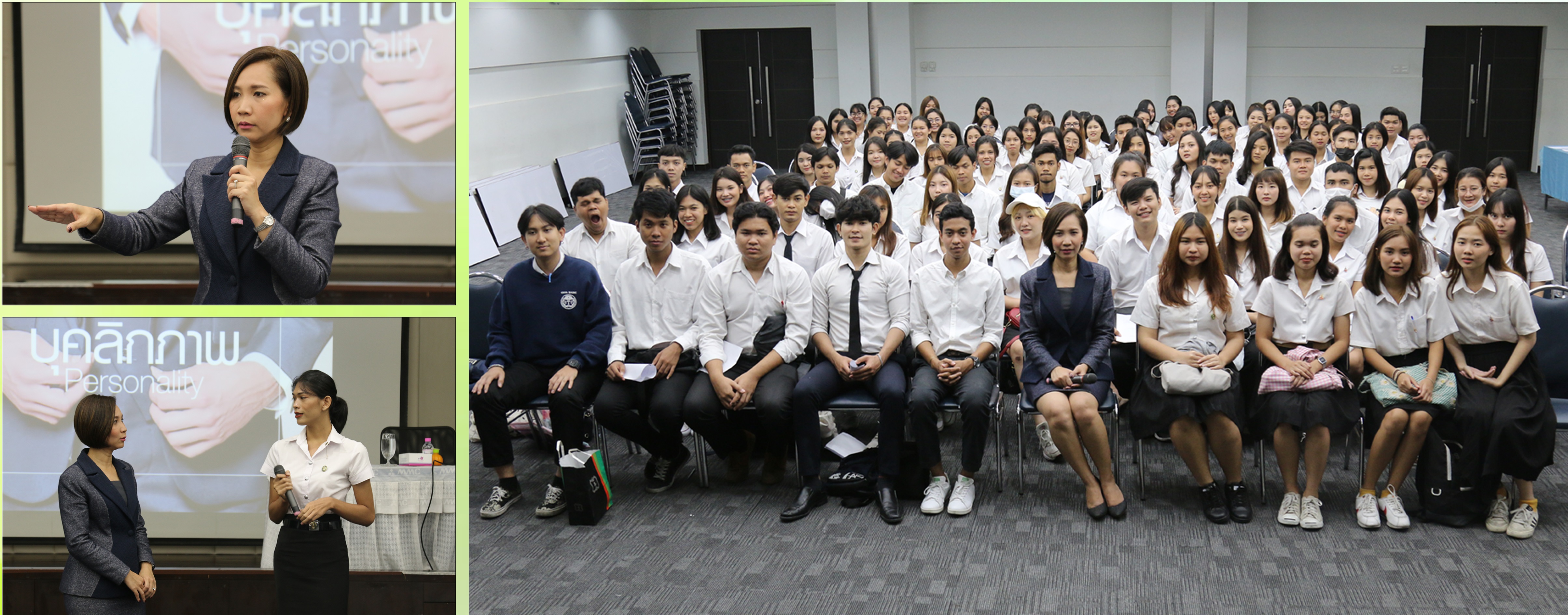 On 15 March, 2019, Asst. Prof. Dr. Kevin Wongleedee, director of the Institution of Lifelong Learning Promotion and Creativity, and Ms. Narumon Chomchom, deputy director of the Institution of Lifelong Learning Promotion and Creativity joins with Student Development Office to offer personality development for 120 third year students. The personality development encourages students to self-awareness, better personality, better image, and personality enhancement.