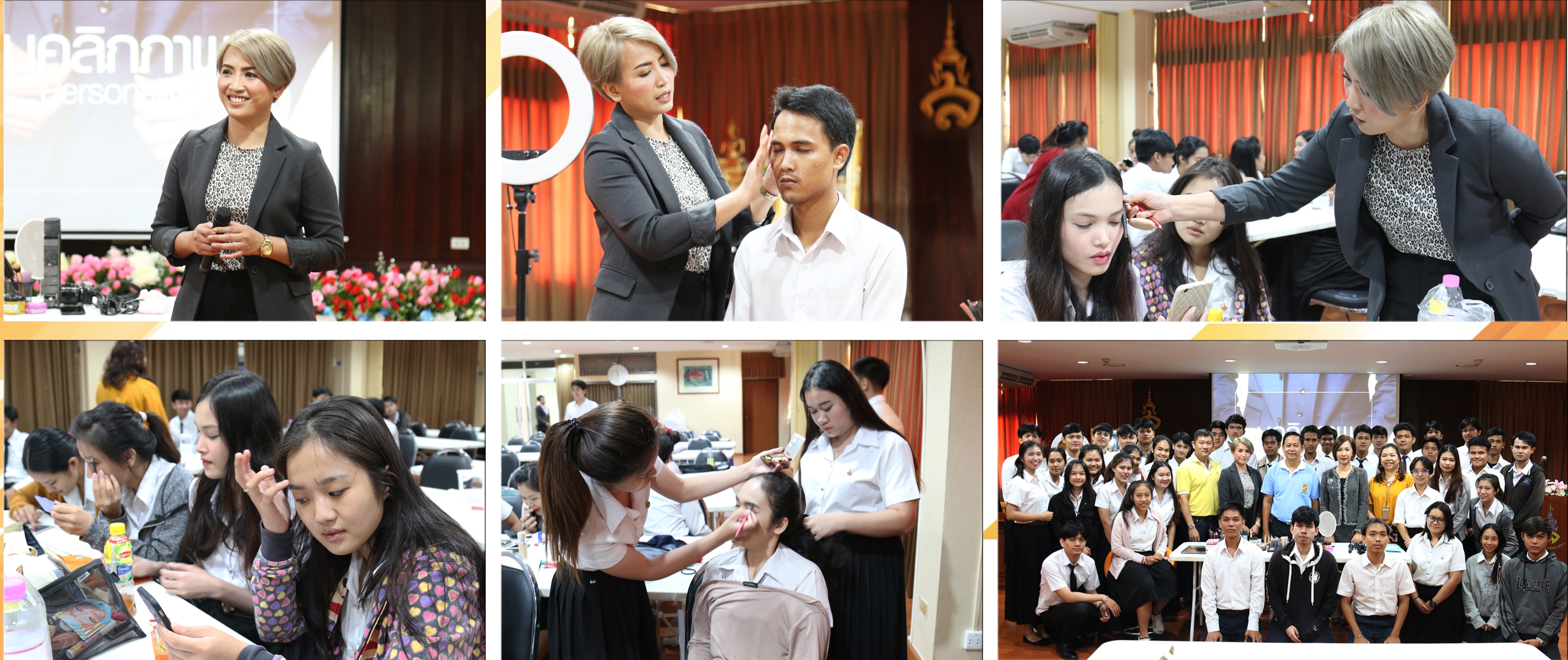 On April 26, 2019, Institution of Lifelong Learning and Promotion, Asst. Prof. Dr. Kevin Wongleedee, director, has assigned Miss Narumon Chomchom, deputy director of special activities, to be the trainer for special “make-up” for applying for a job to internship students, Faculty of Technology Industry. Assoc. Prof. Dr. Somkiet Korborkaew opens the ceremony for this project. Ms. Surasawadee Yanprakone is a guest speaker to sharing her knowledge about make-up effectively at Panichakul Room, Demonstration School, Suan Sunandha.