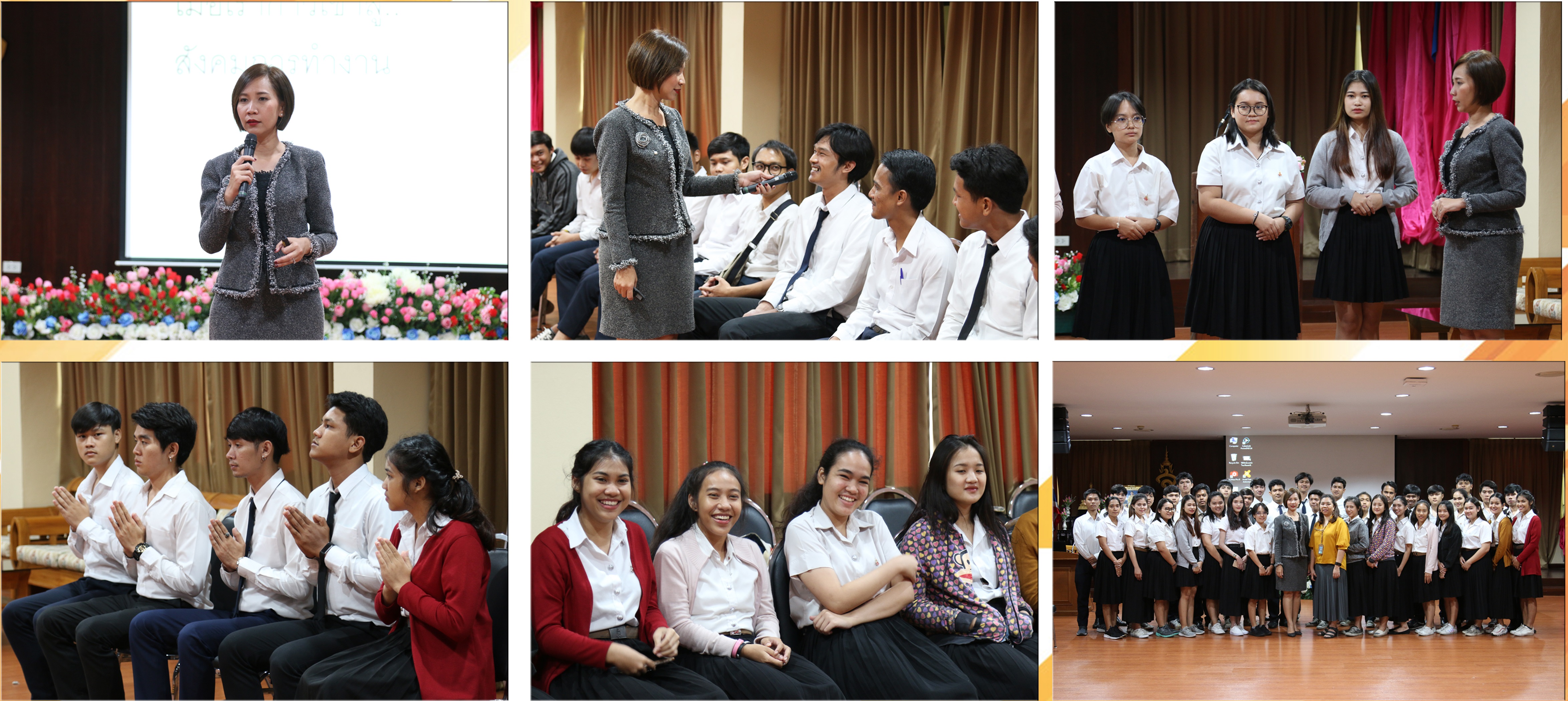 On April 26, 2019, Institution of Lifelong Learning and Promotion, Asst. Prof. Dr. Kevin Wongleedee, director, has assigned Miss Narumon Chomchom, deputy director of special activities, to be the trainer for personality development and first impression for third year students from faculty of technology industry. , in four majors such as Tourism, Airline Business, Restaurant & Hotels, and International Business. The training is about how to improve and enhance the personality to be best employees in globalization. The training is conducted to provide students with first impression knowledge and sharing her knowledge about best personality development at Panichakul Room, Demonstration School, Suan Sunandha.