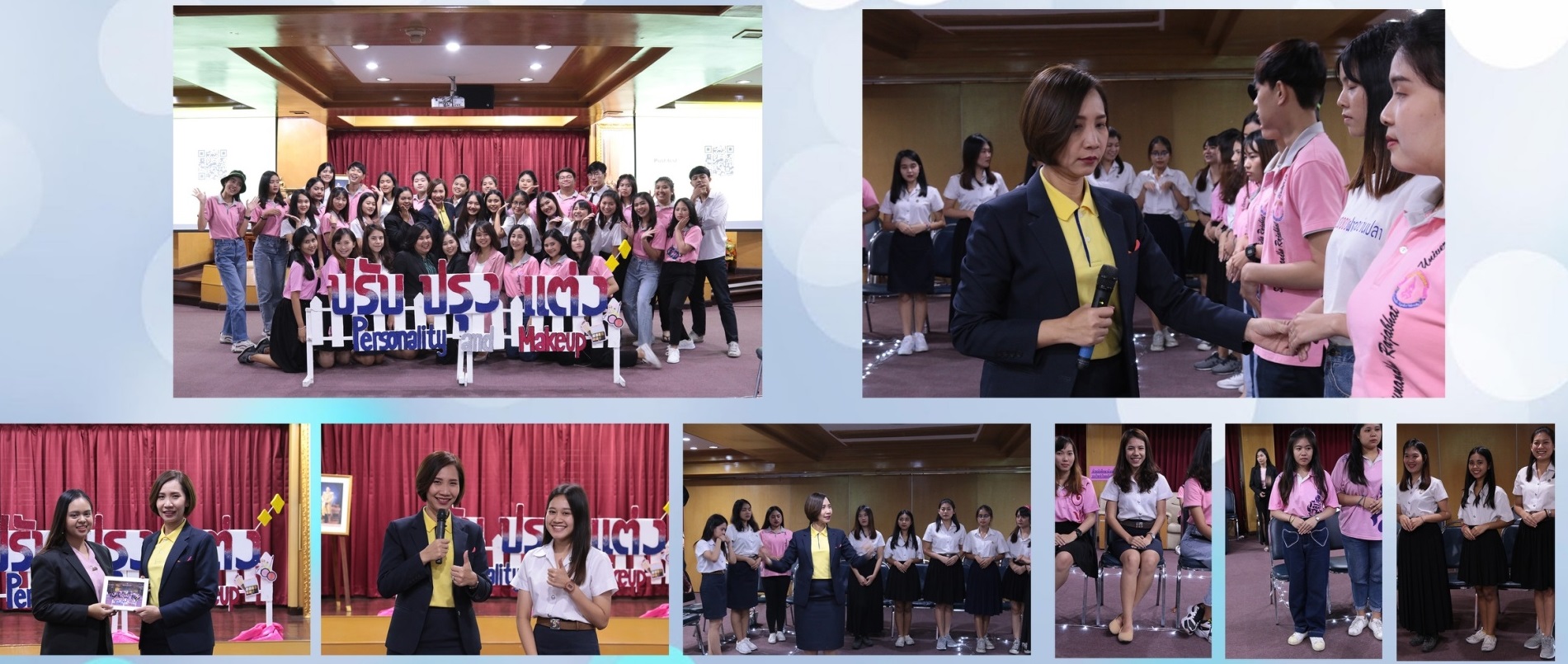 On November 11, 2019, Institution of Lifelong Learning and Creativity, Asst. Prof. Dr. Kevin Wongleedee have assigned Ms. Narumon Chomchom, deputy director of activities and Mr. Pongsak Rungsang, Plan and Budget Staff of ILPC to provide training knowledge of PR and personality development to 35 fourth year students from faculty of Management Science. This training is part of the class PRFC4802, on topic of Personality and Makeup and Vitality of First Impression. The training takes place at Building 57, Faculty of Management Science.