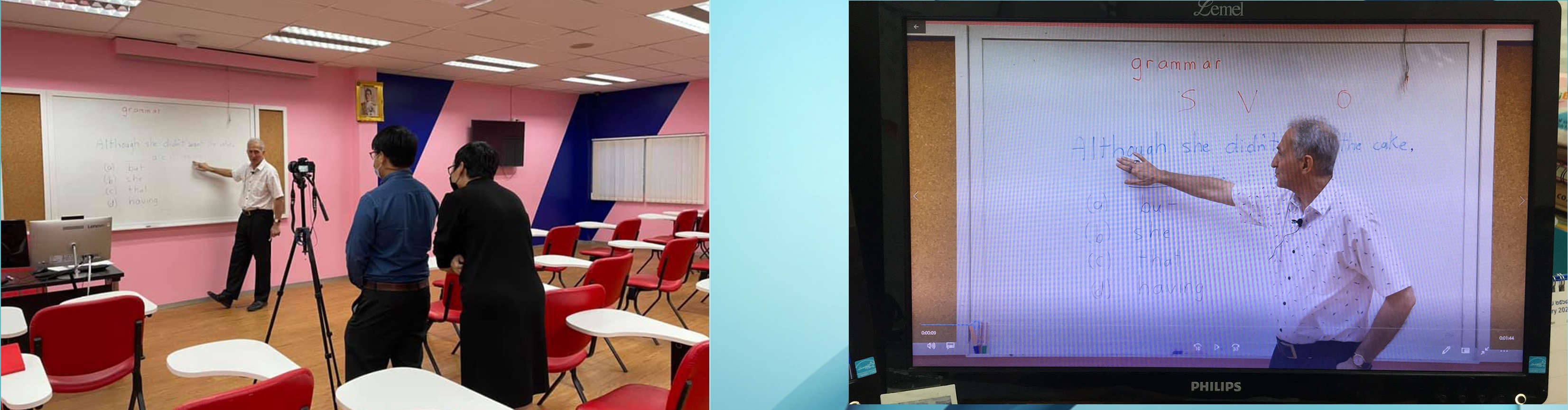 On January 28th, 2021, Institution of Lifelong Learning Promotion and Creativity, Asst. Prof. Dr. Kevin Wongleedee, Director of ILPC, assigns Miss Nungruthai Sanunrum, deputy of head of office, together with ILPC staff to participate in the making of video clips to teach English with Mr. Jeffery Dickie.
