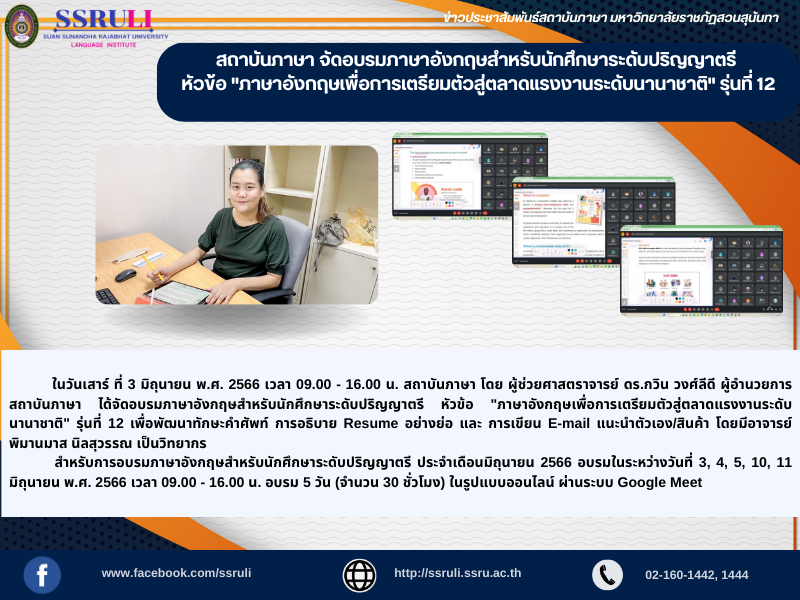 ได้จัดอบรมภาษาอังกฤษสำหรับนักศึกษาระดับปริญญาตรี