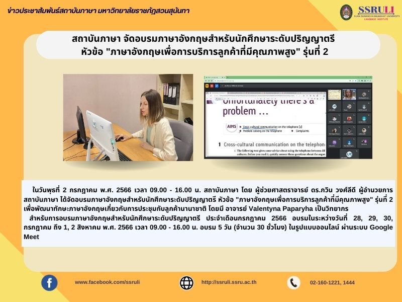 "ภาษาอังกฤษเพื่อการบริการลูกค้าที่มีคุณภาพสูง"
