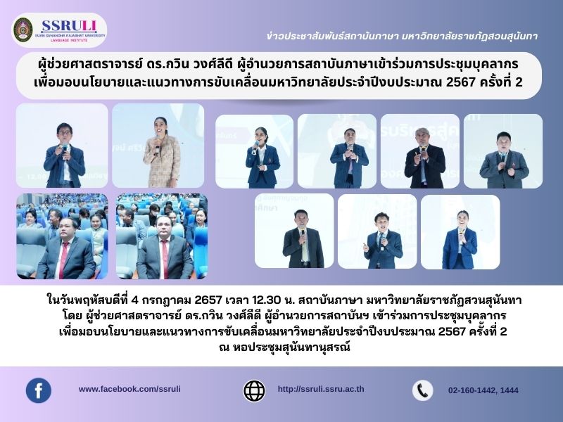 ผู้อำนวยการสถาบันภาษาเข้าร่วมการประชุมบุคลากรเพื่อมอบนโยบายและแนวทางการขับเคลื่อนมหาวิทยาลัยประจำปีงบประมาณ