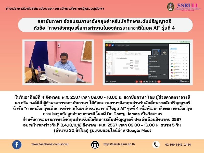 ได้จัดอบรมภาษาอังกฤษสำหรับนักศึกษาระดับปริญญาตรี
