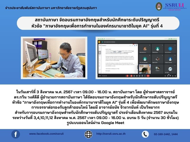 ได้จัดอบรมภาษาอังกฤษสำหรับนักศึกษาระดับปริญญาตรี