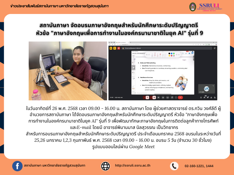ได้จัดอบรมภาษาอังกฤษสำหรับนักศึกษาระดับปริญญาตรี