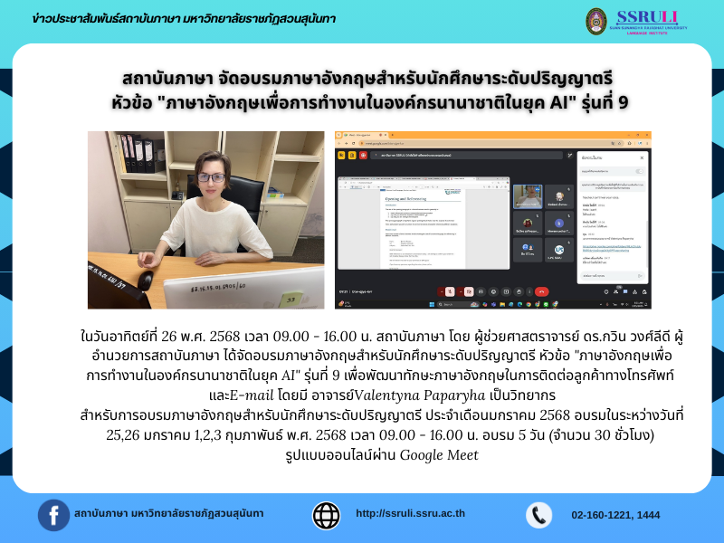 ได้จัดอบรมภาษาอังกฤษสำหรับนักศึกษาระดับปริญญาตรี