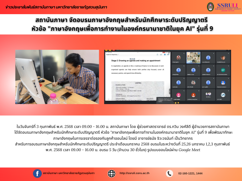ได้จัดอบรมภาษาอังกฤษสำหรับนักศึกษาระดับปริญญาตรี