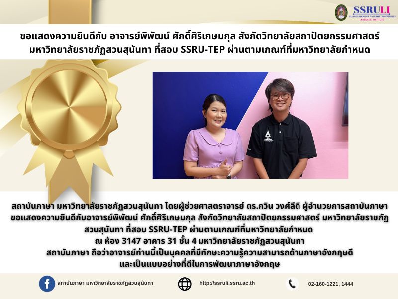 ถือว่าอาจารย์ท่านนี้เป็นบุคคลที่มีทักษะความรู้ความสามารถด้านภาษาอังกฤษดี