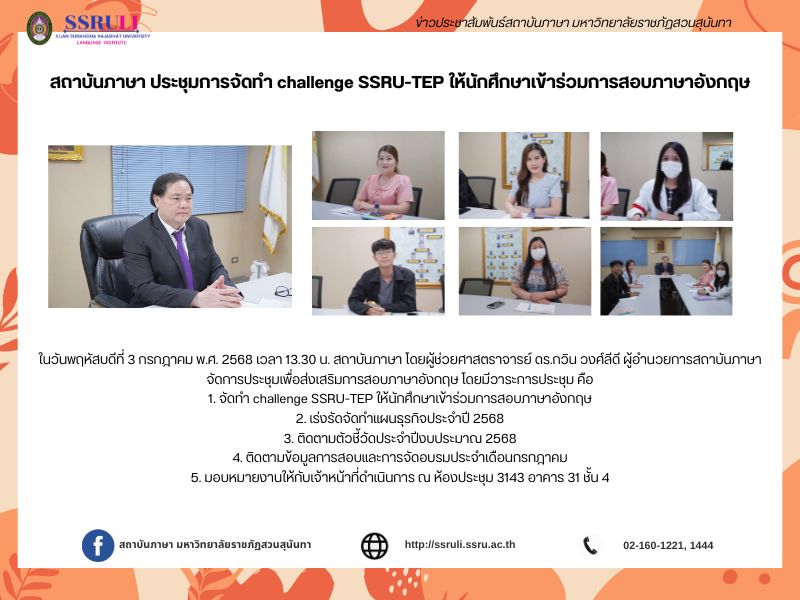 สถาบันภาษา ประชุมการจัดทำ challenge SSRU-TEP ให้นักศึกษาเข้าร่วมการสอบภาษาอังกฤษ