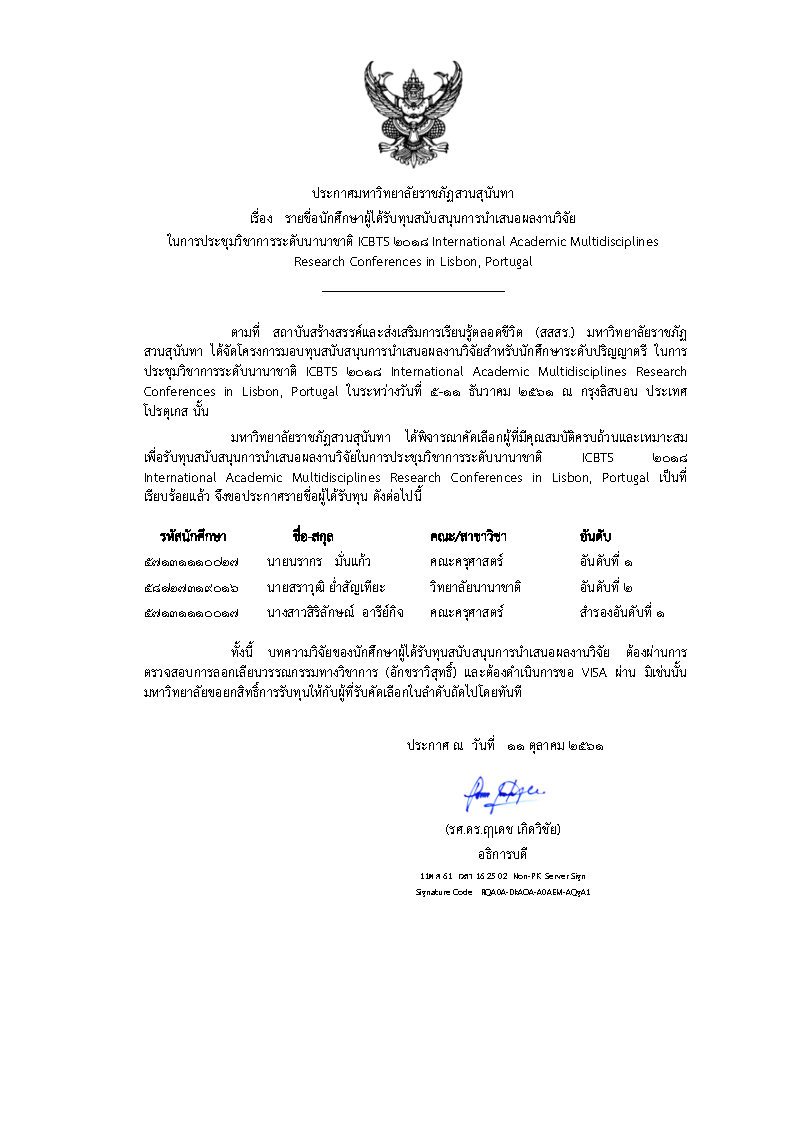 ประกาศรายชื่อผู้ได้รับทุนสนับสนุนการนำเสนอผลงานวิจัยในการประชุมวิชาการระดับนานาชาติ