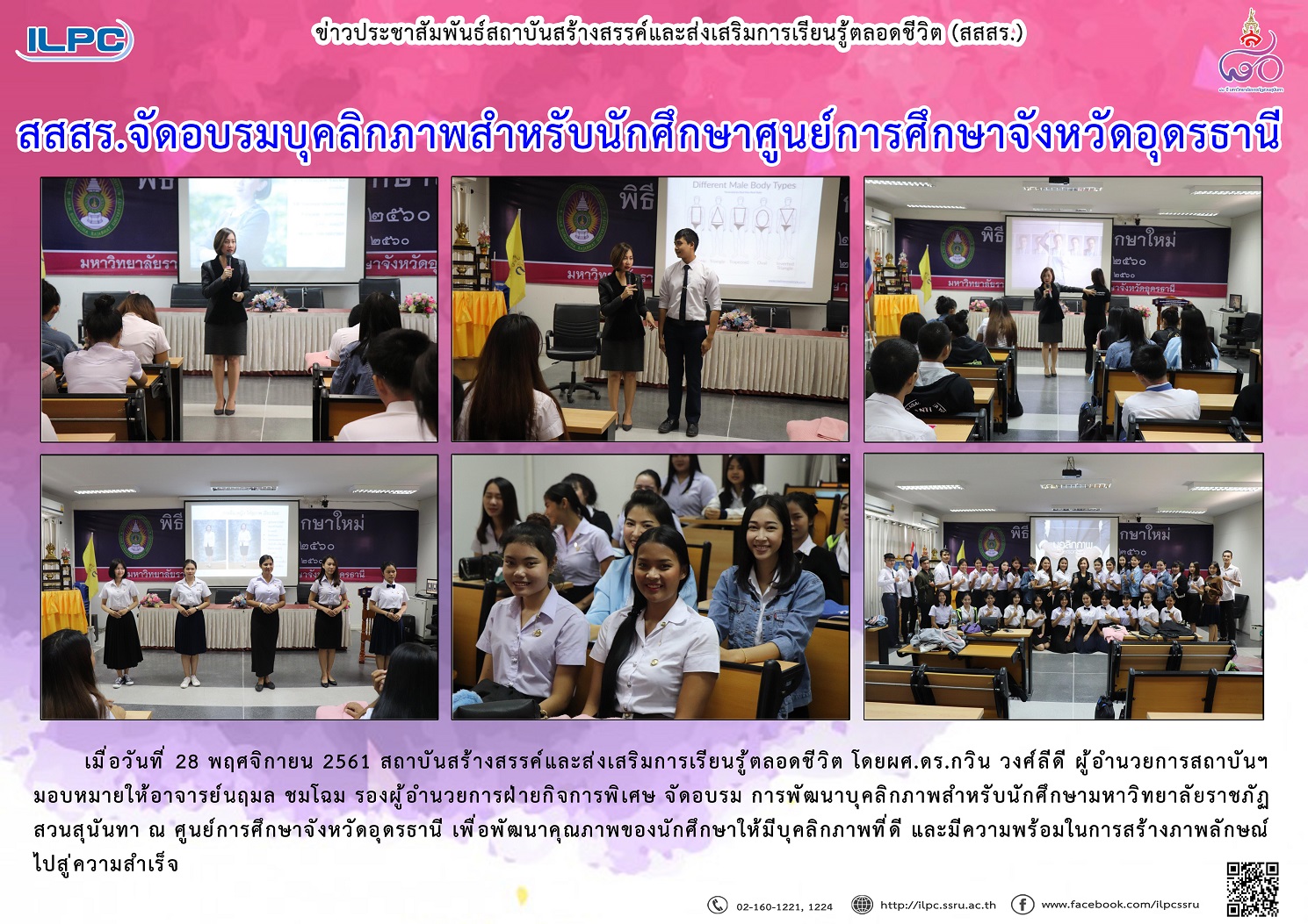 > สสสร. จัดอบรมบุคลิกภาพสำหรับนักศึกษาศูนย์การศึกษาจังหวัดอุดรธานี