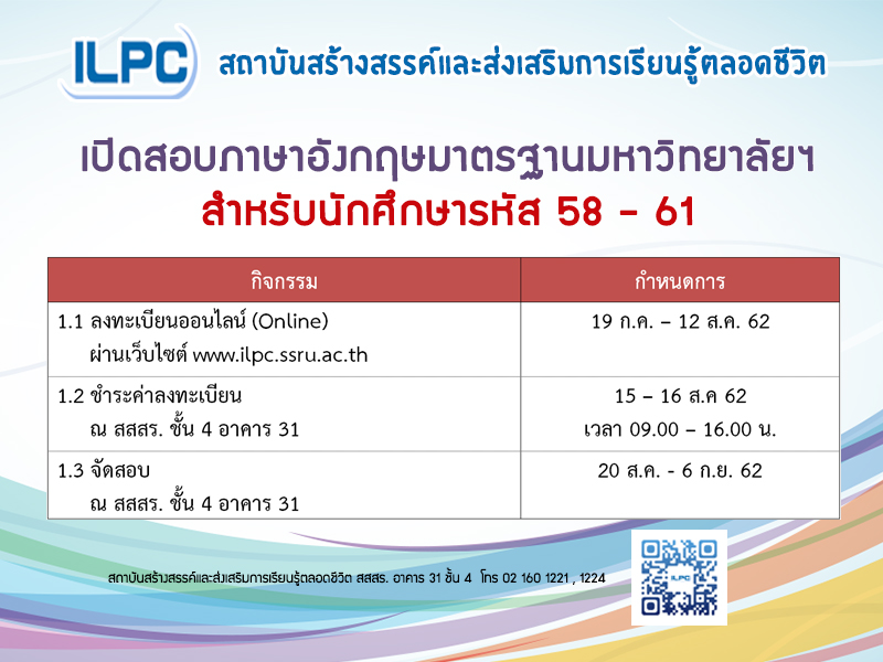 > เปิดลงทะเบียนสอบภาษาอังกฤษมาตรฐานมหาวิทยาลัย สำหรับป.ตรี หรัส 58-61