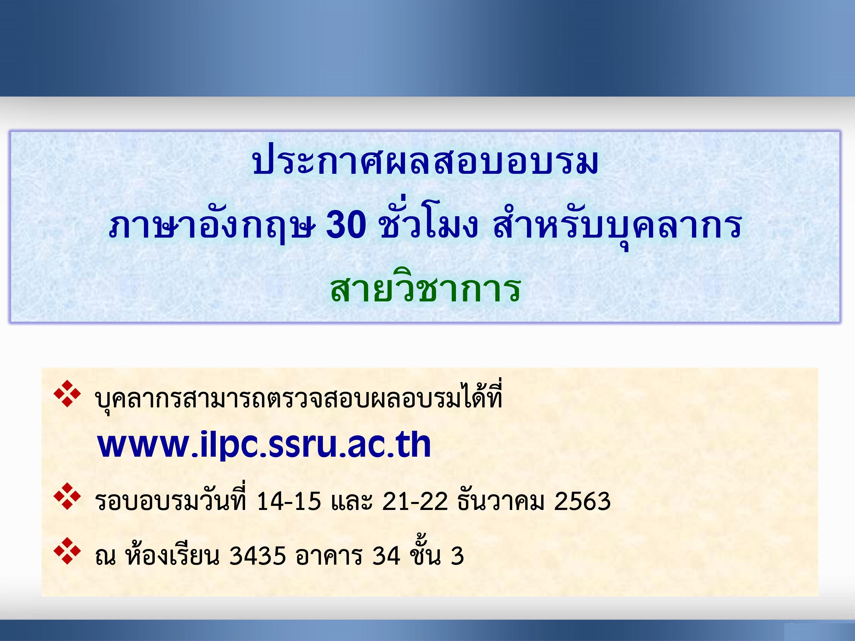 > ประกาศผลอบรมสำหรับบุคลากรสายวิชาการ(14-15 และ 21-22 ธ.ค.63)