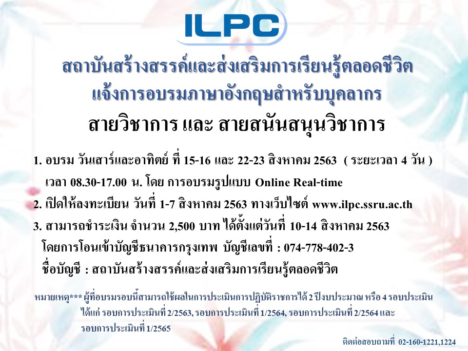 > กำหนดการอบรมภาษาอังกฤษสำหรับบุคลากรมหาวิทยาลัยฯ