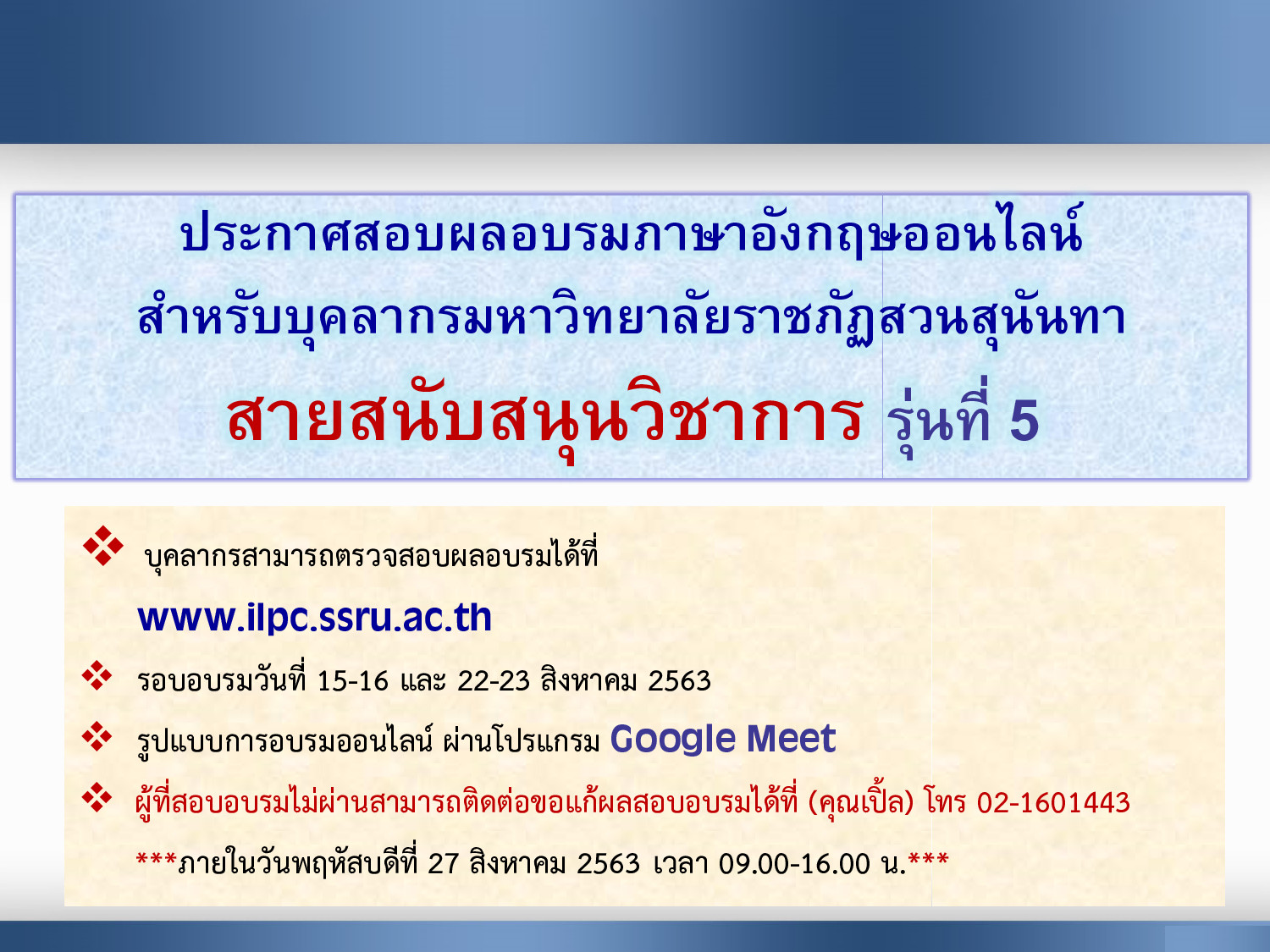 ประกาศผลอบรมสำหรับบุคลากรสายสนับสนุนวิชาการ (16-17 และ 23-24 ส.ค. 63)