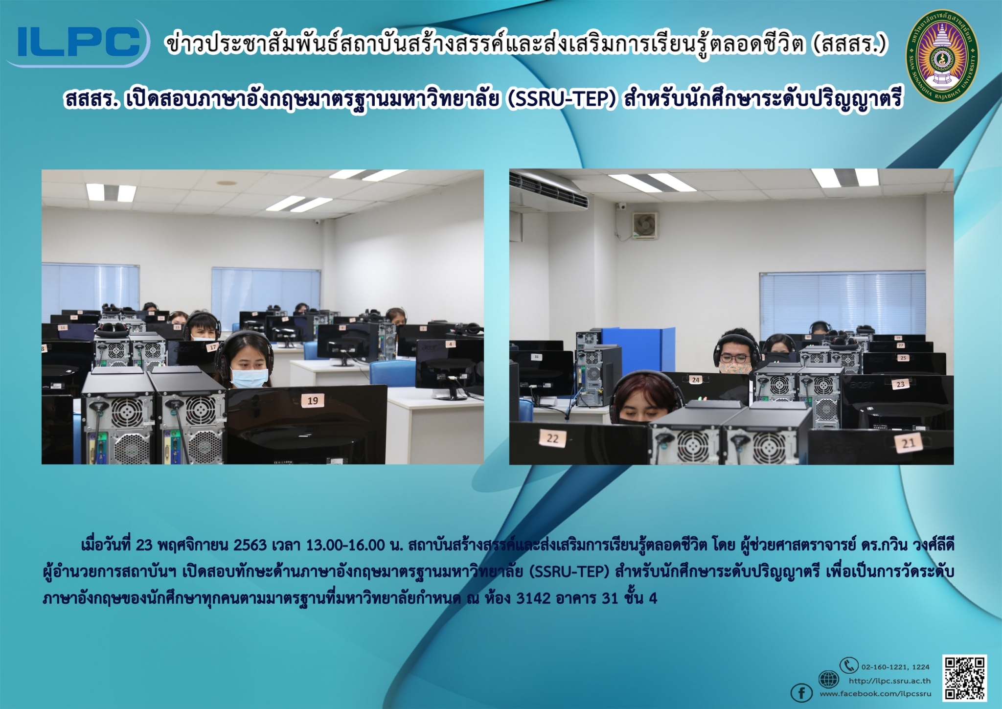 > สสสร. เปิดสอบภาษาอังกฤษมาตรฐานมหาวิทยาลัย (SSRU-TEP) สำหรับนักศึกษาระดับปริญญาตรี