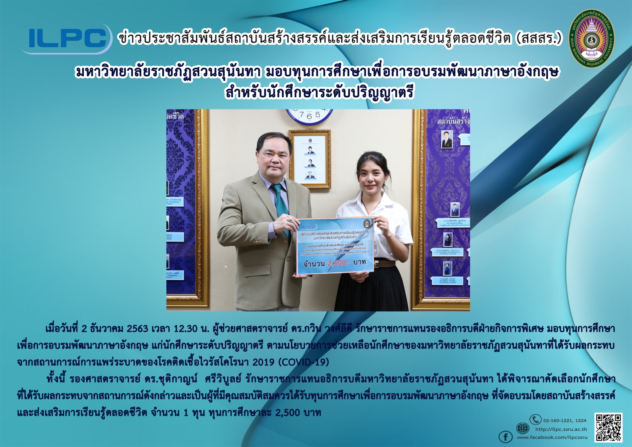มหาวิทยาลัยราชภัฏสวนสุนันทา มอบทุนการศึกษาเพื่อการอบรมพัฒนาภาษาอังกฤษสำหรับนักศึกษาระดับปริญญาตรี