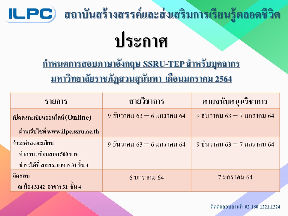 > กำหนดการสอบภาษาอังกฤษสำหรับบุคลากร เดือนมกราคม 2564