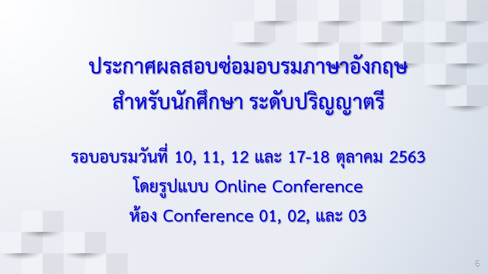 ประกาศผลอบรมภาษาอังกฤษสำหรับนักศึกษา (เพิ่มเติม) รอบเดือนตุลาคม 2563