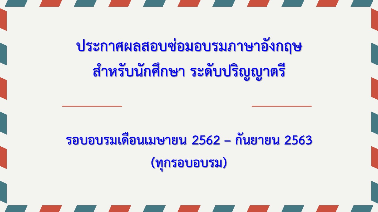 ประกาศผลอบรมภาษาอังกฤษสำหรับนักศึกษา (เพิ่มเติม) รอบเดือนตุลาคม 62 - กันยายน 63