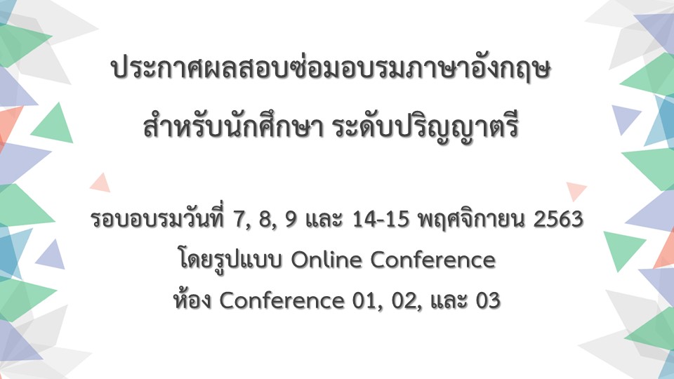 ประกาศผลอบรมภาษาอังกฤษสำหรับนักศึกษา (เพิ่มเติม) รอบเดือนตุลาคม 2563 - ห้องง Conference 03