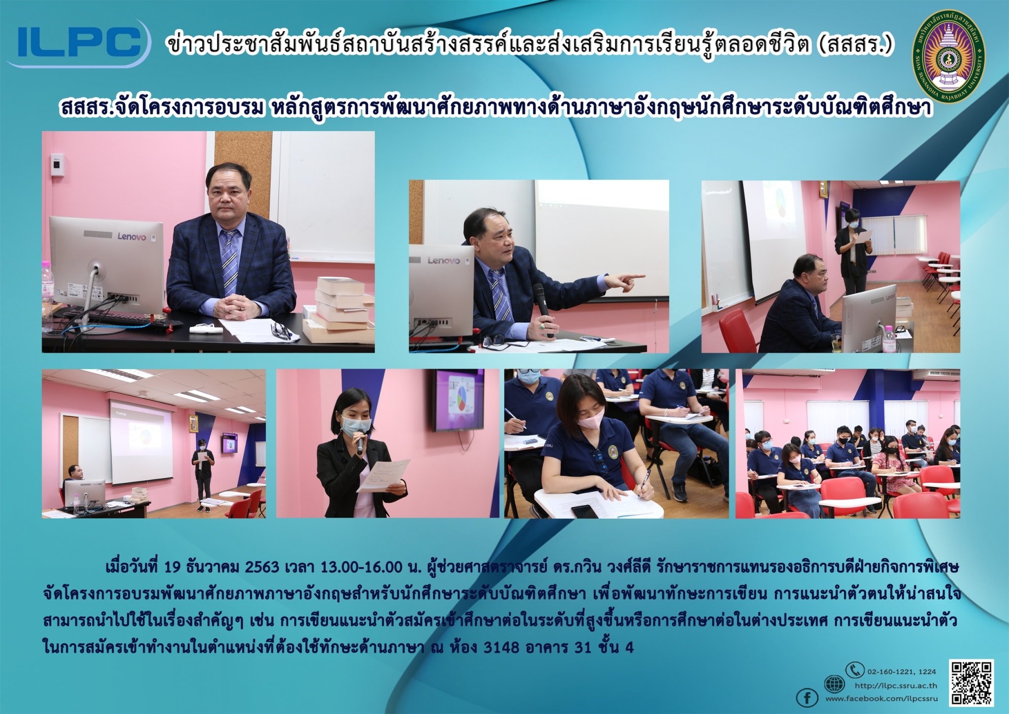 > สสสร. จัดโครงการอบรม หลักสูตรการพัฒนาศักยภาพทางด้านภาษาอังกฤษนักศึกษาระดับบัณฑิตศึกษา