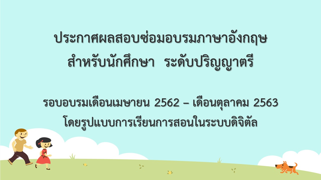 ประกาศผลซ่อมอบรมภาษาอังกฤษสำหรับนักศึกษา ระดับปริญญาตรี รอบเมษายน 2562 - ตุลาคม 2563