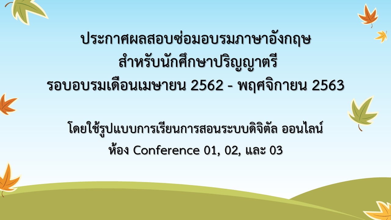 ประกาศผลสอบซ่อมอบรมภาษาอังกฤษ สำหรับนักศึกษาปริญญาตรี รอบระหว่างเดือน เมษายน 2562 - พฤศจิกายน 2563
