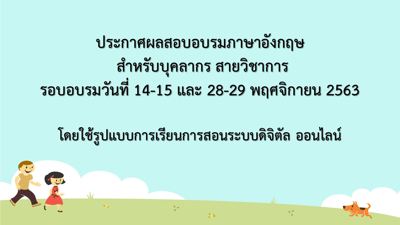 ประกาศผลสอบอบรมภาษาอังกฤษสำหรับบุคลากร สายวิชาการ รอบเดือน พฤศจิกายน 2563 (Update 04 มี.ค. 64)