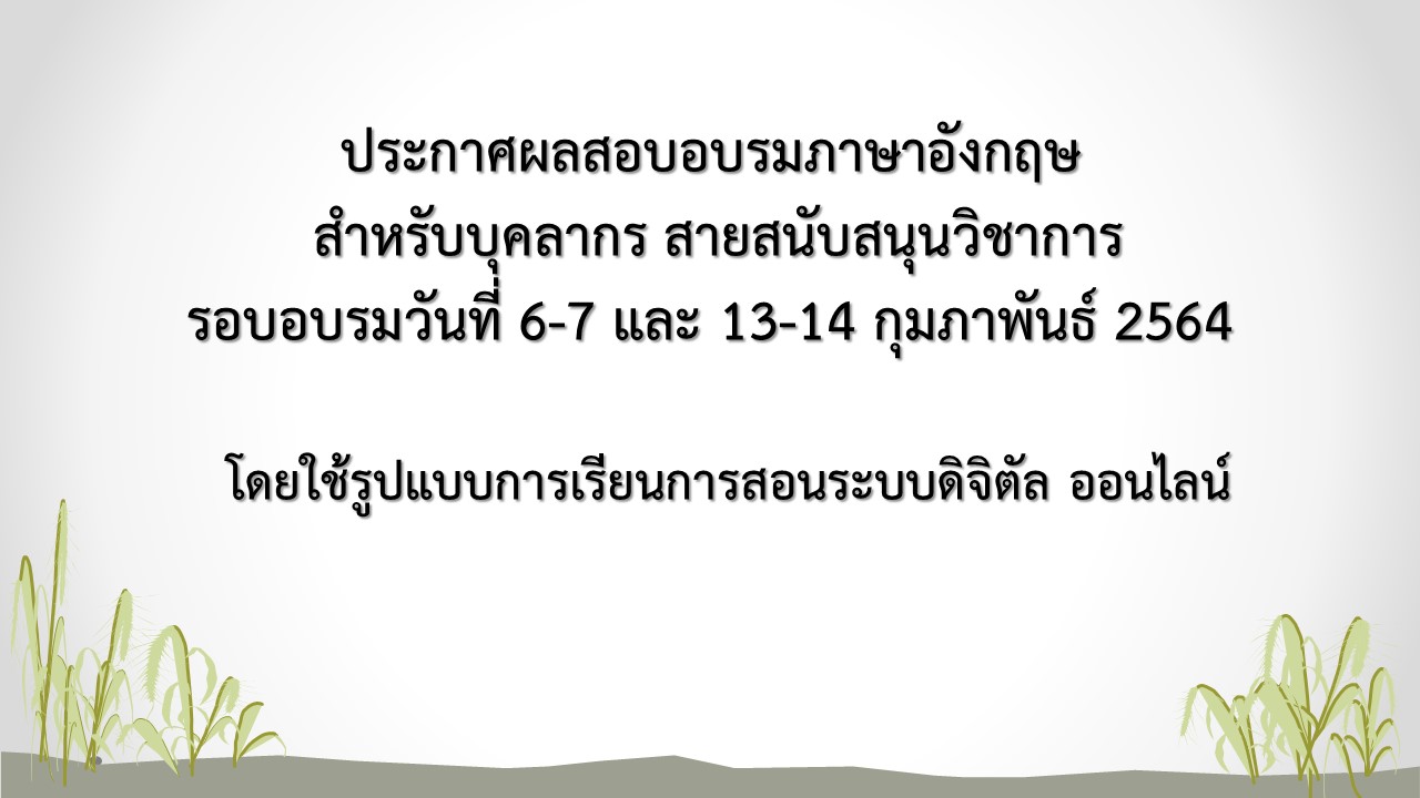 ประกาศผลสอบอบรมภาษาอังกฤษสำหรับบุคลากร สายสนับสนุนวิชาการ รอบเดือน กุมภาพันธ์ 2564 (Update 16 มี.ค. 64)