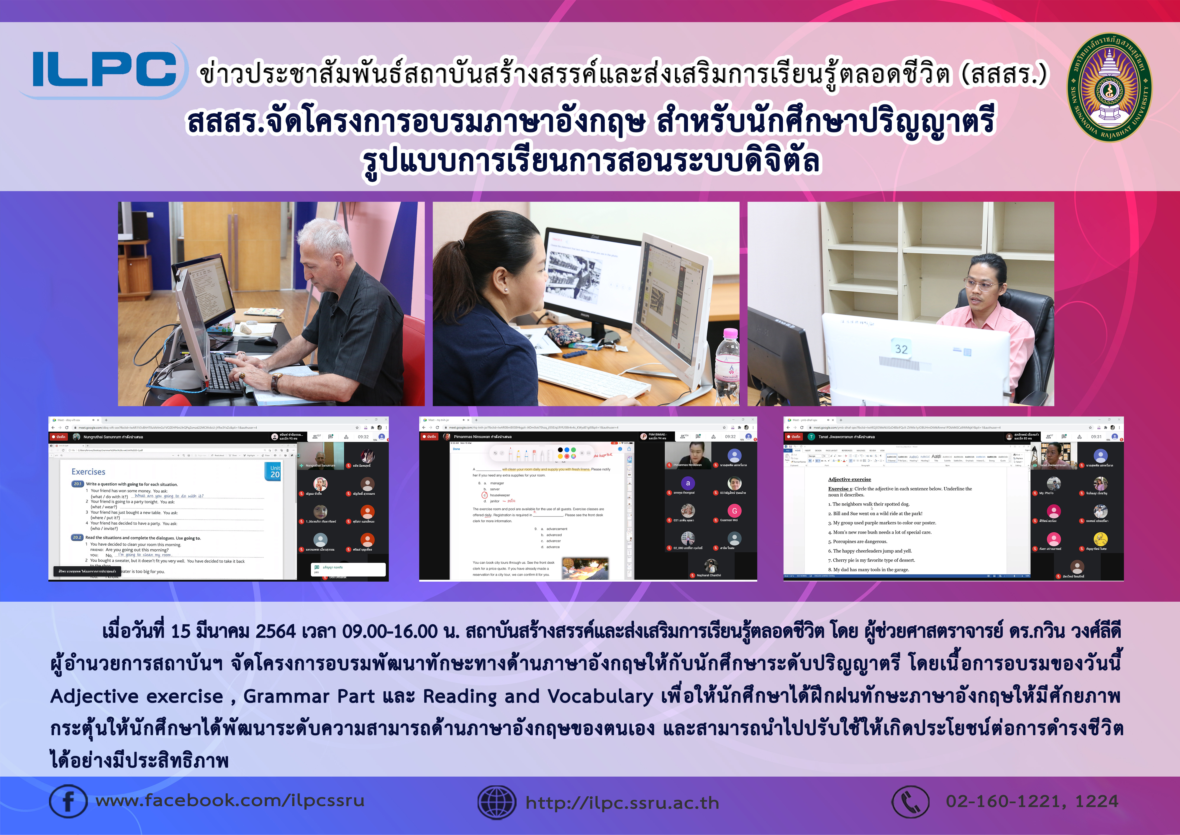 > สสสร. จัดโครงการอบรมภาษาอังกฤษ สำหรับนักศึกษาปริญญาตรี รูปแบบการเรียนการสอนระบบดิจิตัล