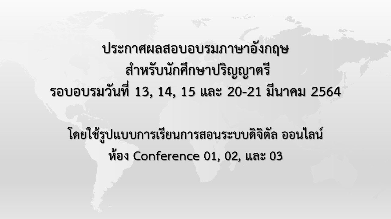 1. ประกาศผลสอบอบรมภาษาอังกฤษสำหรับนักศึกษาปริญญาตรี รอบเดือน มีนาคม 2564 ห้อง 01