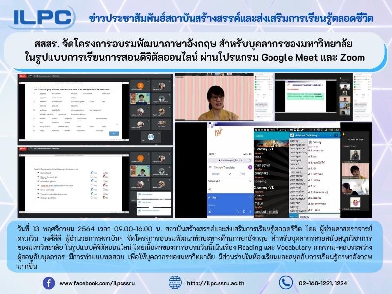 สสสร. จัดโครงการอบรมพัฒนาภาษาอังกฤษ สำหรับบุคลากรของมหาวิทยาลัย ในรูปแบบการเรียนการสอนดิจิตัลออนไลน์ ผ่านโปรแกรม Google Meet และ Zoom