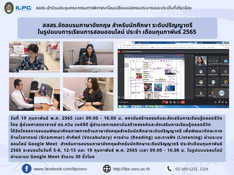 สสสร.จัดอบรมภาษาอังกฤษสำหรับนักศึกษาระดับปริญญาตรี ในรูปแบบการเรียนการสอนออนไลน์ ประจำเดือนกุมภาพันธ์ 2565