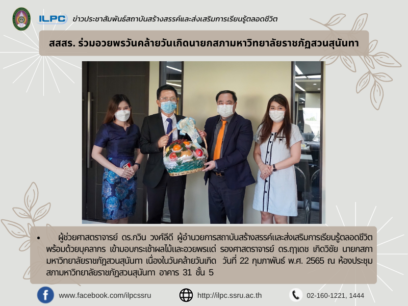 > สสสร. ร่วมอวยพรวันคล้ายวันเกิด นายกสภามหาวิทยาลัยราชภัฏสวนสุนันทา