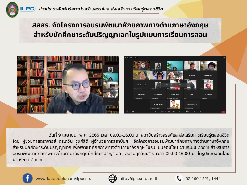 จัดโครงการอบรมพัฒนาศักยภาพทางด้านภาษาอังกฤษสำหรับนักศึกษาระดับปริญญาเอกในรูปแบบการเรียนการสอน