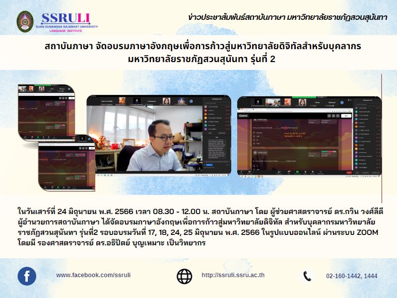 จัดอบรมภาษาอังกฤษเพื่อการก้าวสู่มหาวิทยาลัยดิจิทัลสำหรับบุคลากรมหาวิทยาลัยราชภัฏสวนสุนันทา