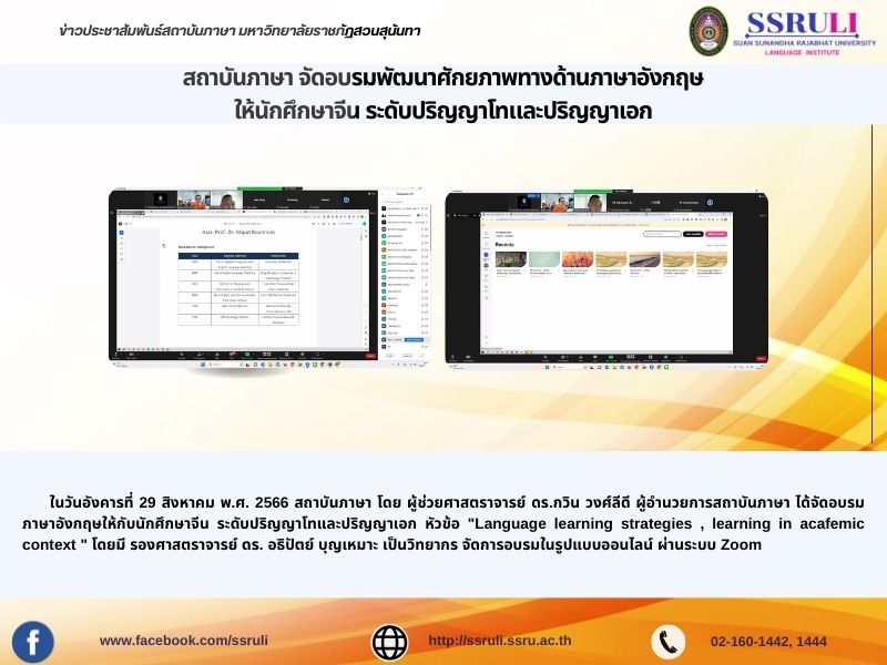 ได้จัดอบรมภาษาอังกฤษให้กับนักศึกษาจีน