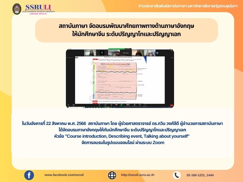 ได้จัดอบรมภาษาอังกฤษให้กับนักศึกษาจีน