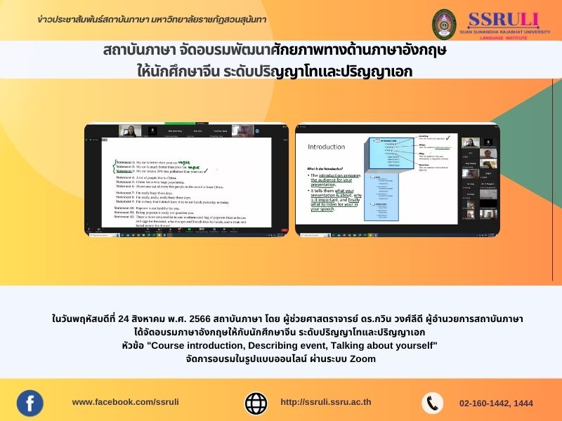 ได้จัดอบรมภาษาอังกฤษให้กับนักศึกษาจีน