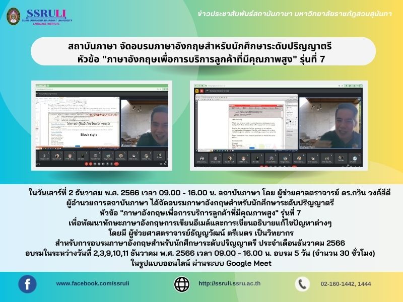 ได้จัดอบรมภาษาอังกฤษสำหรับนักศึกษาระดับปริญญาตรี