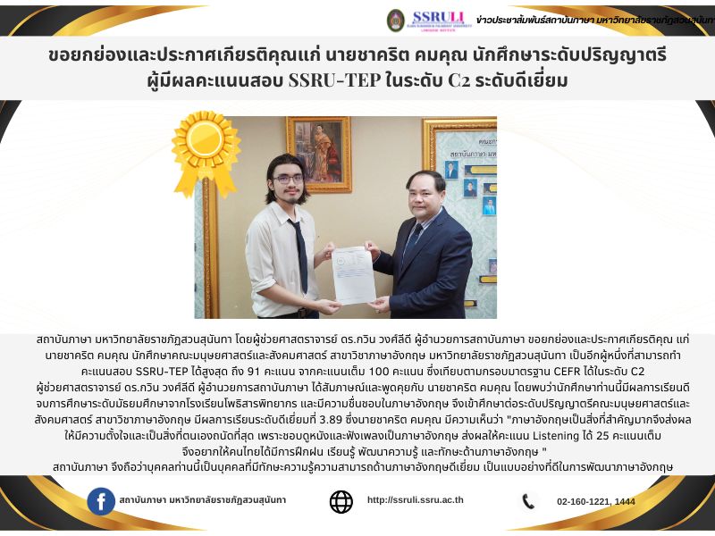 ผู้มีผลคะแนนสอบ SSRU-TEP ในระดับ C2