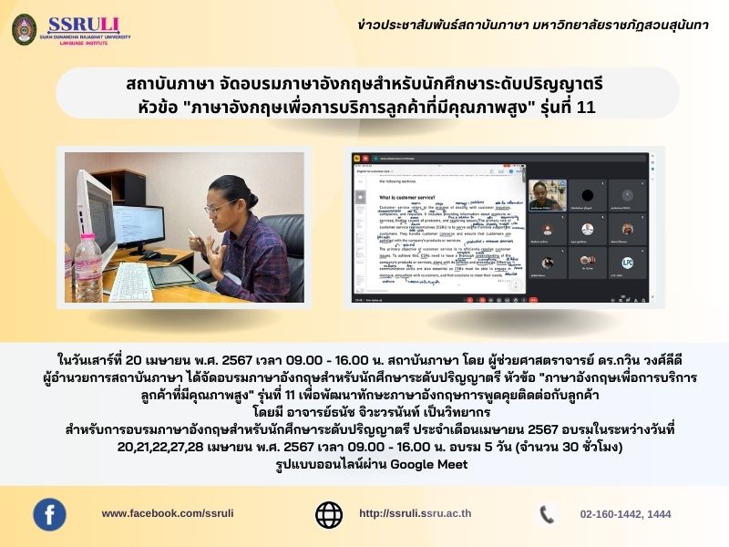 ได้จัดอบรมภาษาอังกฤษสำหรับนักศึกษาระดับปริญญาตรี