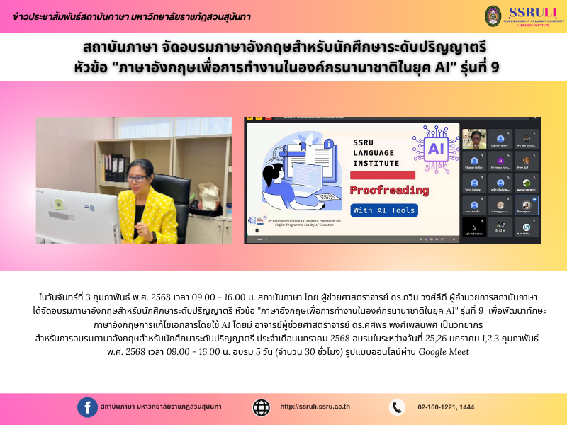ได้จัดอบรมภาษาอังกฤษสำหรับนักศึกษาระดับปริญญาตรี