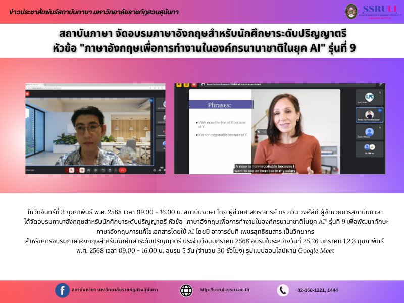 ได้จัดอบรมภาษาอังกฤษสำหรับนักศึกษาระดับปริญญาตรี