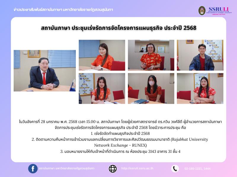 จัดการประชุมเร่งรัดการจัดโครงการแผนธุรกิจ