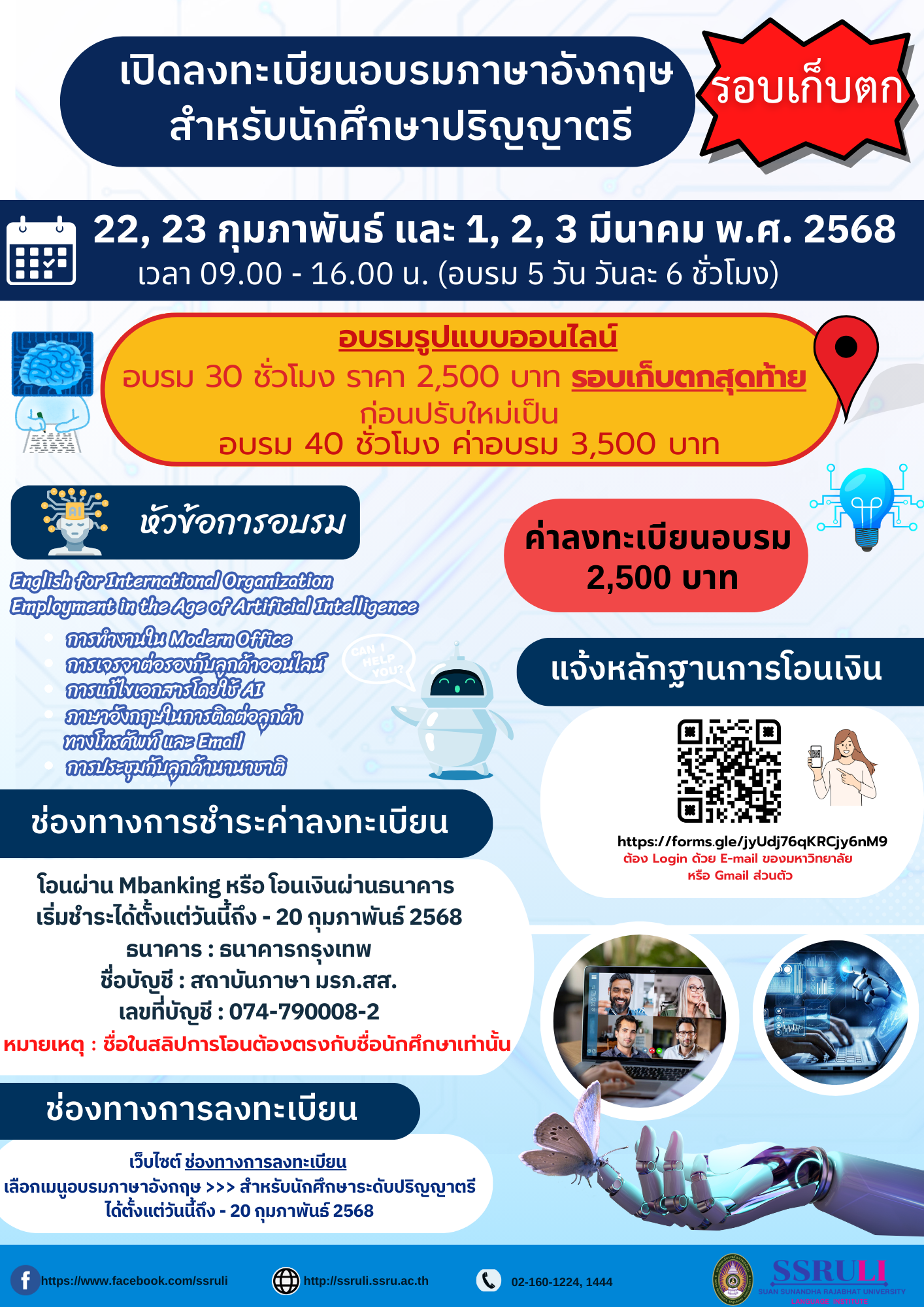 กุมภาพันธ์ 2568 ผ่านช่องทาง https://www.facebook.com/ssruli