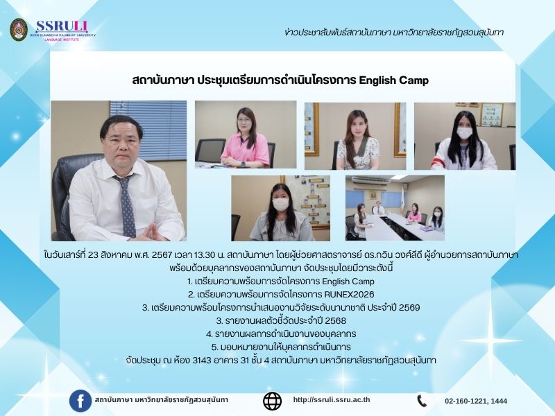 จัดประชุม ณ ห้อง 3143 อาคาร 31 ชั้น 4 สถาบันภาษา มหาวิทยาลัยราชภัฏสวนสุนันทา